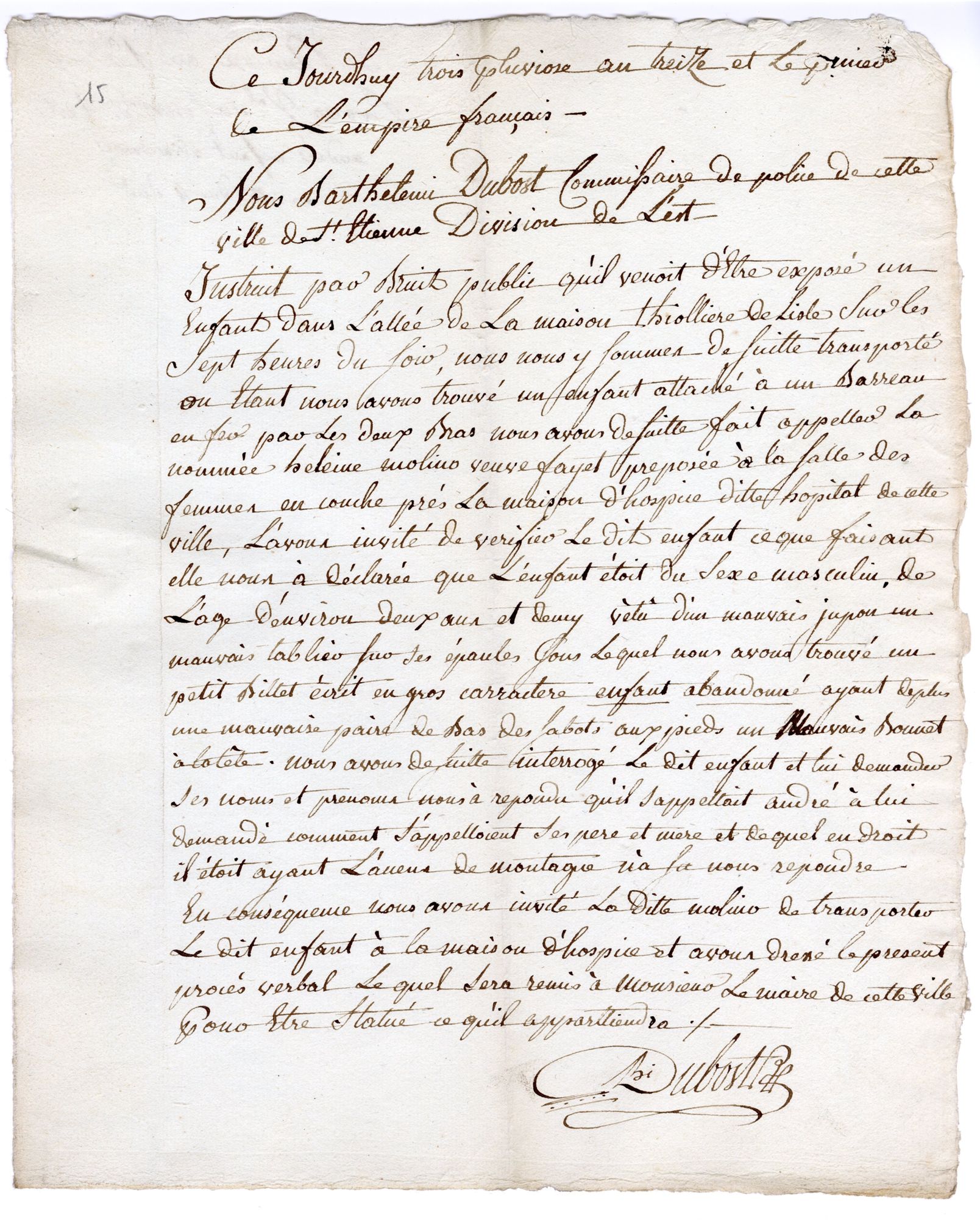Les archives municipales et métropolitaines de Saint-Étienne conservent des actes d'abandons d'enfants dans la sous-série 3 Q. Pour la période du 11 avril 1799 au 23 mai 1865 ce sont environ 8200 enfants abandonnés, parfois des fratries, qui ont été enregistrés par les services de la Ville de Saint-Étienne. Quelques uns ont été récupérés par leur famille.