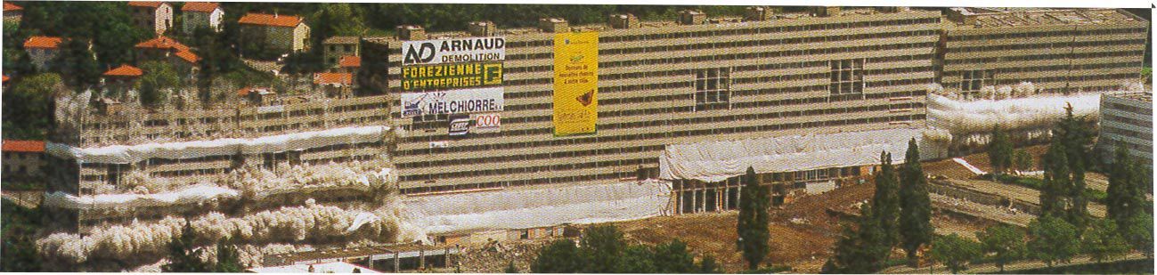 Nommée par les Stéphanois la Muraille de Chine en raison de sa longueur atypique (280 mètres de long, plus de 11 mètres de large pour une hauteur de 47 mètres), la barre d'habitation qui identifiait le quartier de Montchovet, au sud-est de Saint-Étienne, disparaissait il y a tout juste 20 ans.