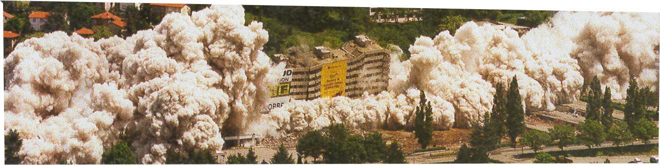 Construite en 1962-63, avec 501 logements, plus de 3000 habitants, le 27 mai 2000 à 13 heures, la Muraille de Chine était foudroyée. Cette démolition était la plus importante d'Europe à l'époque. Quinze seconde -et plus de 600 kg de dynamite- ont suffi à transformer les 501 appartements en 80 000 tonnes de gravats.