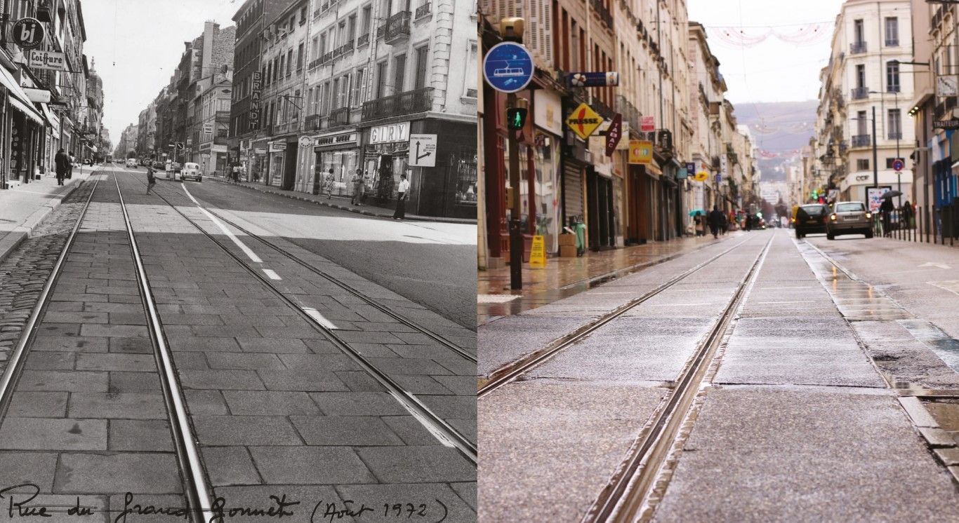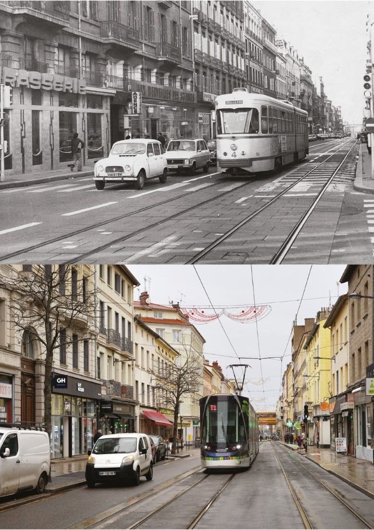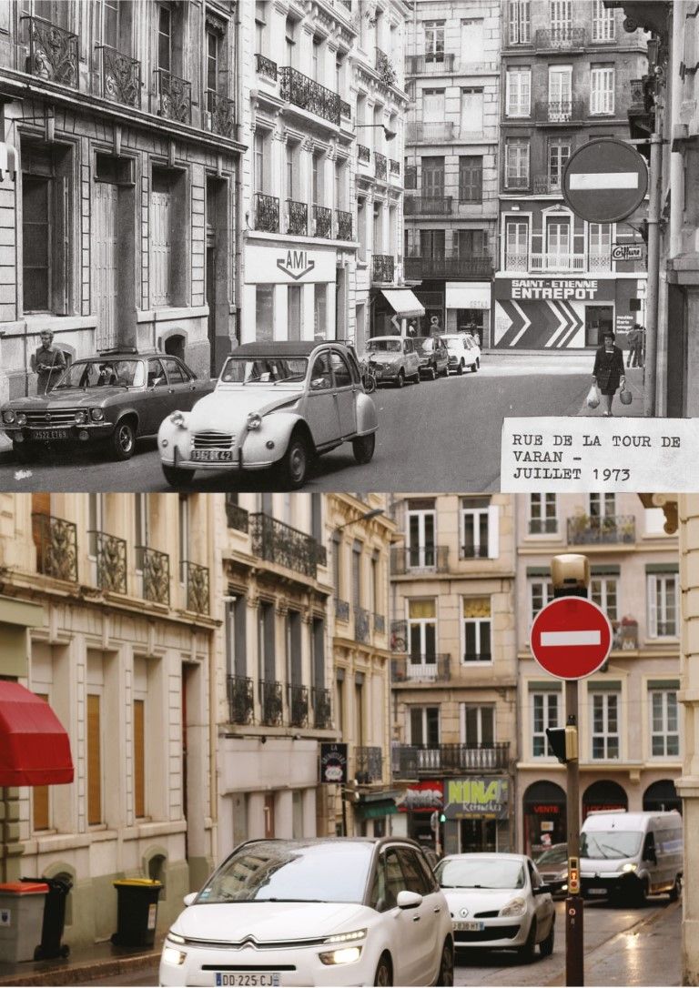 Les élèves se sont emparés des photographies de la commande de 1972-73 qui répertorie les rues et quartiers de Saint-Étienne, pour créer des diptyques et des compositions en photographiant ces mêmes rues aujourd’hui. Ils nous montrent ainsi l’évolution de la ville qu’ils ont aussi découverte à cette occasion, créant parfois le doute entre le nouveau et l’ancien.