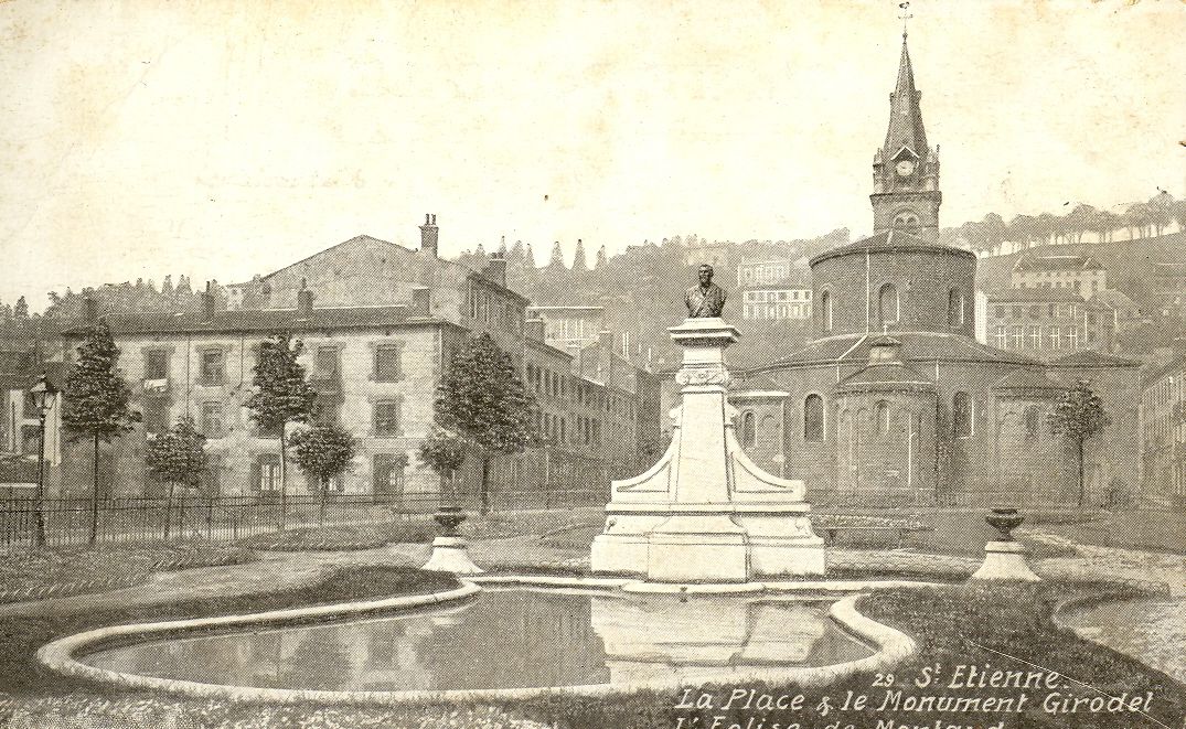 Située devant l'église de Montaud, la place Girodet, comme d'autres à Saint-Etienne, est aménagée en square dès le début du XXème siècle.