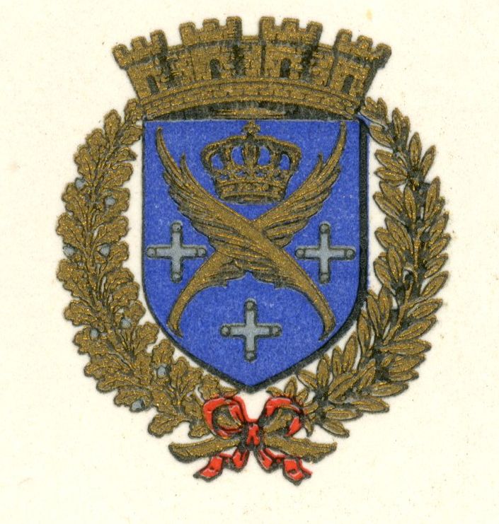 C'est le service des Archives qui a été chargé par M. le Maire, Alexandre de Fraissinette, de mener à bien la définition officielle des armoiries. M. Robert Louis, artiste héraldiste, dessinateur symboliste des Services Officiels, a apporté sa collaboration.