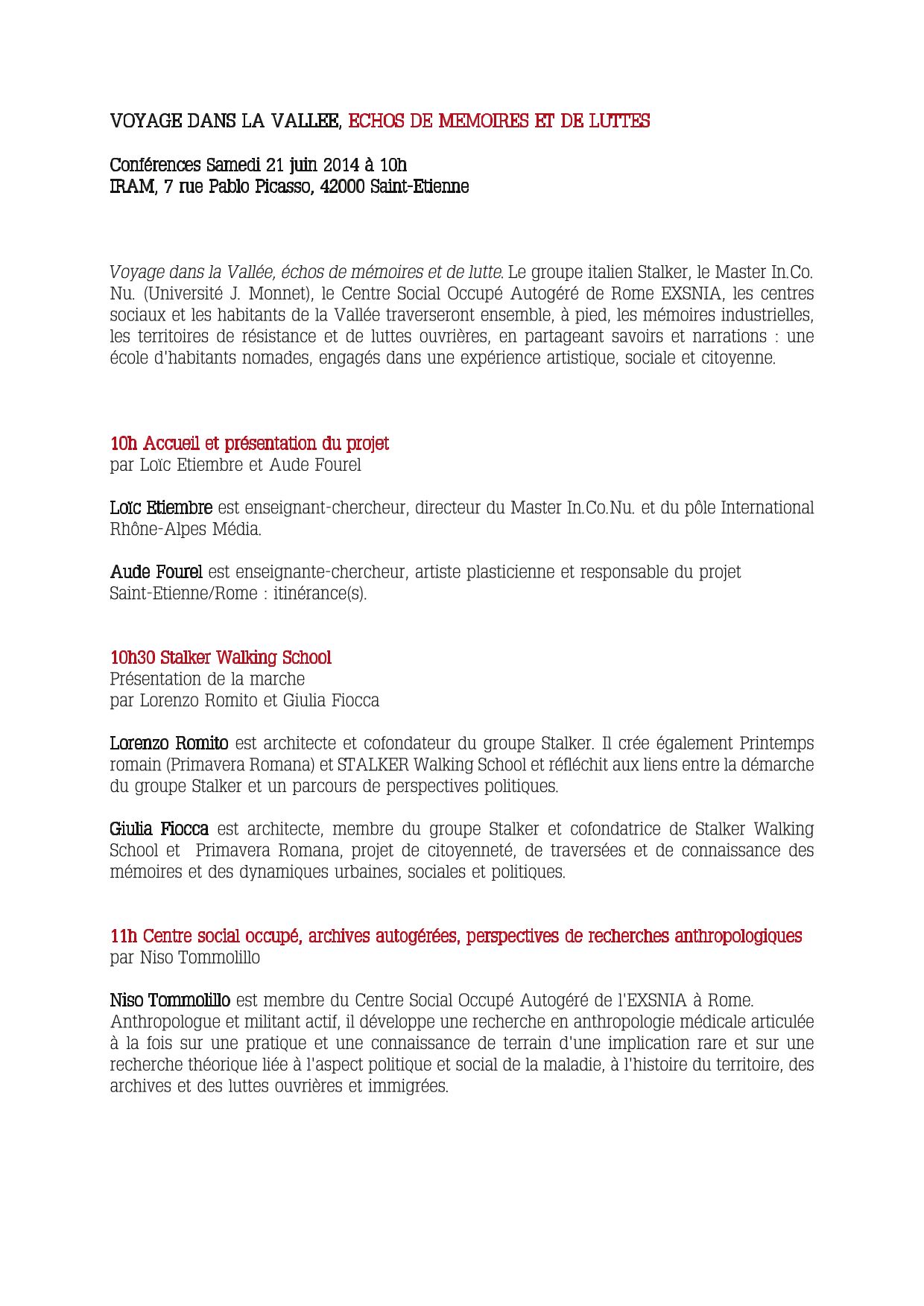 AVEC QUI ? Centre social occupé autogéré de Rome (CSOA Exsnia) / Habitants et centres sociaux de la vallée (le Babet, Comité d'animation du parc de Montaud, Maison de quartier du Soleil, centre social d'Izieux-le-Creux) / Jeunes chercheurs / Artistes...