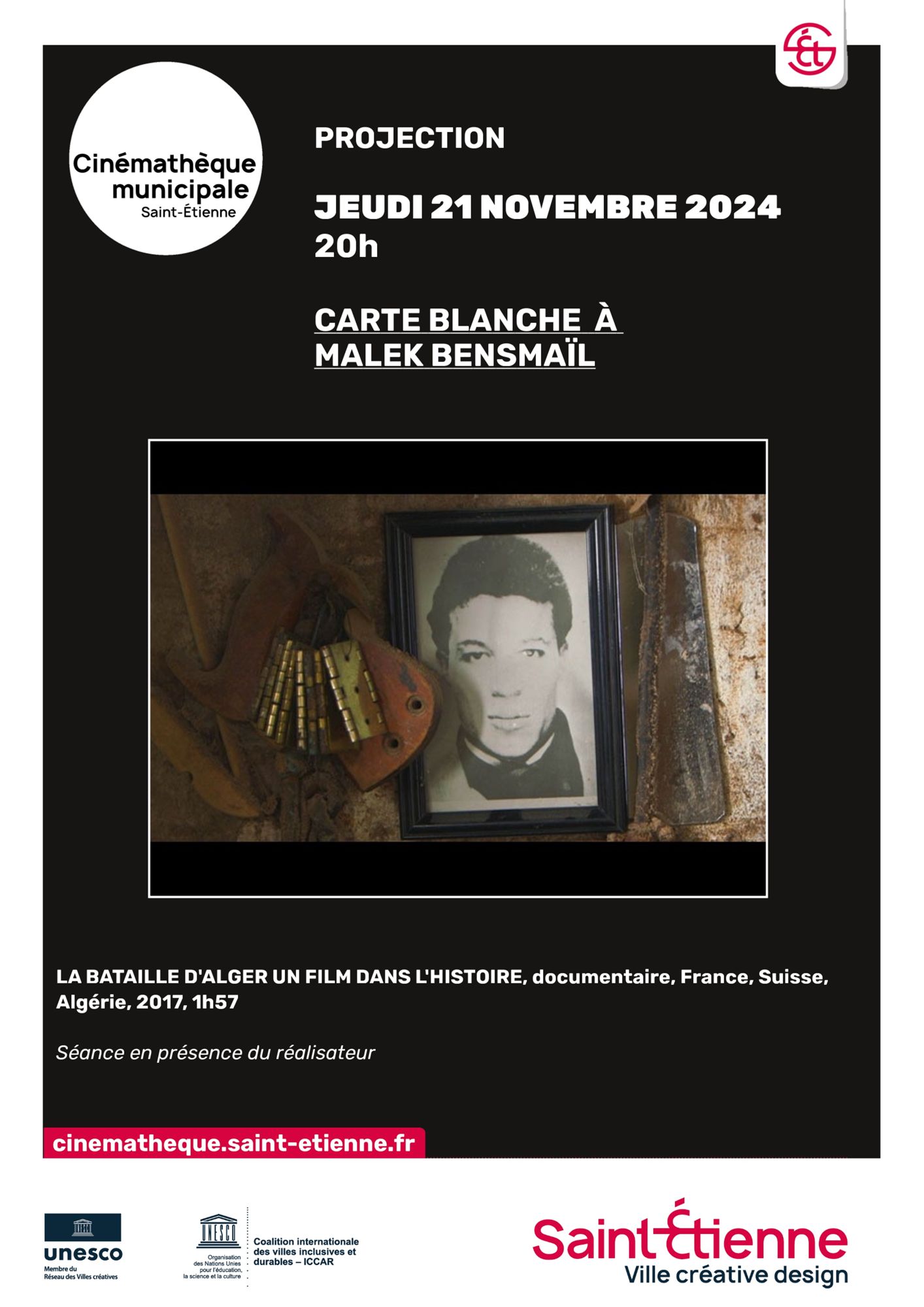 Jeudi 21 novembre à 20 h, projection du documentaire La Bataille d'Alger, un film dans l'histoire - en présence du réalisateur Malek Bensmaïl.