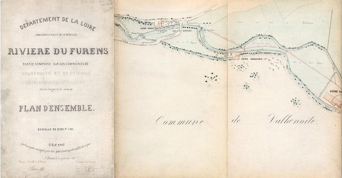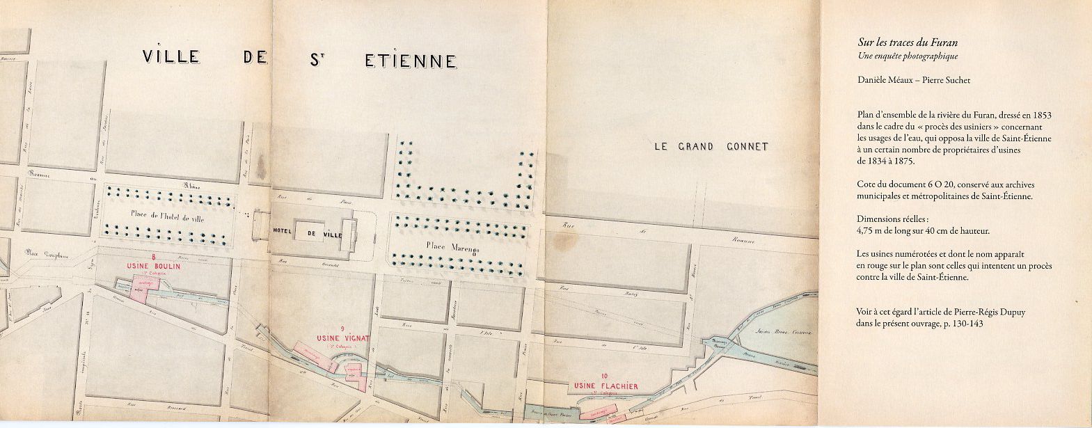 Les archives municipales et métropolitaines de Saint-Étienne ont largement participé à cet ouvrage. Vous trouverez de nombreux documents et photograhpies issus de nos fonds d'archives ainsi que la reproduction du plan coté 6 O 20 conservé dans notre dépôt (dimensions réelles du document : 4,75 m de long sur 40 cm de hauteur).